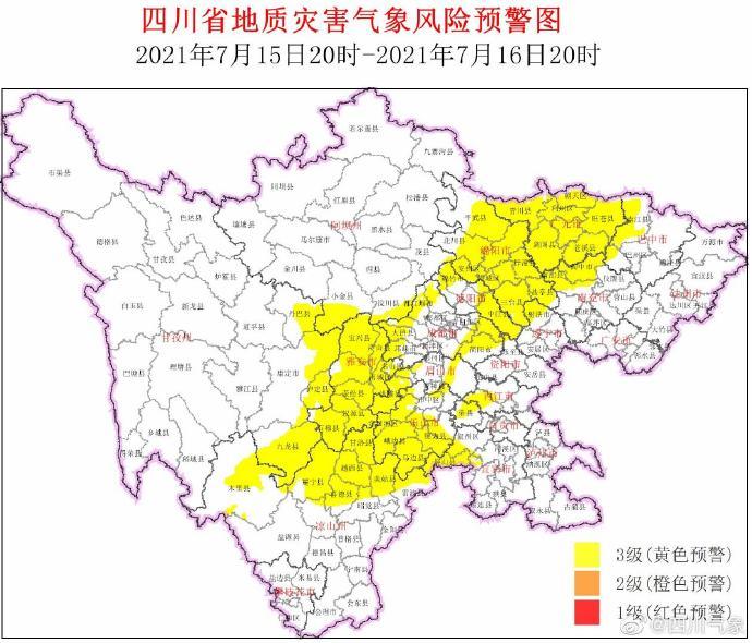 7月15日20时~7月16日20时,广元、绵阳、德阳、雅安、眉山、乐山6市大部,巴中、遂宁、资阳、内江、自贡、宜宾6市西部,成都东部及西部,南充西北部,阿坝州东南部局地,甘孜州东部,凉山州北部发生地质灾害的风险较高。请上述地区加强地质灾害防范。