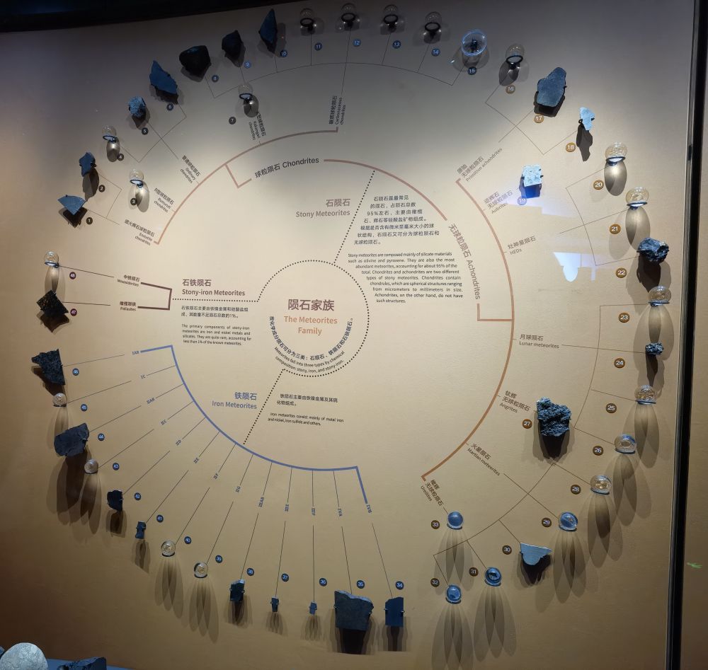 馆内展出的东乌珠穆沁旗陨石于1995年9月在内蒙古东乌珠穆沁旗地区上空陨落。这是一块稀有的石铁陨石子类中铁陨石,切面可见漂亮的大颗粒金属结核状结构,局部可见角砾状橄榄石晶体。