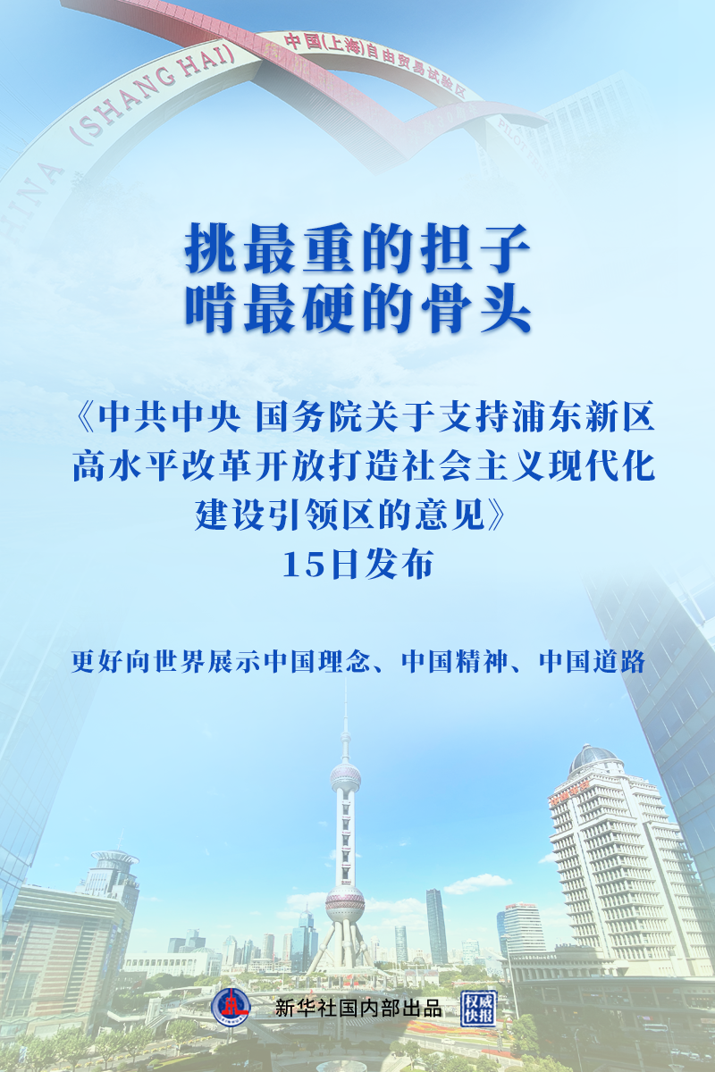 《中共中央 国务院关于支持浦东新区高水平改革开放打造社会主义现代化建设引领区的意见》15日发布