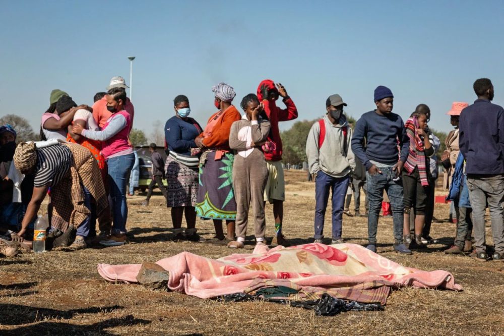 7月14日,在南非约翰内斯堡,骚乱事件遇难者家属神色悲痛。新华社发(耶希尔摄)