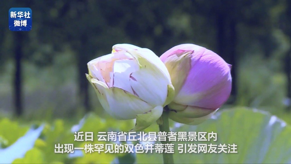 【#云南普者黑景区再现并蒂莲#】近日,云南省丘北县普者黑景区内出现一株罕见的双色并蒂莲,引发网友关注。日前,在普者黑情人桥湖又出现一株纯白并蒂莲,目前花开正旺。戳视频,一起来欣赏。(记者:孙敏) 新华社的微博视频