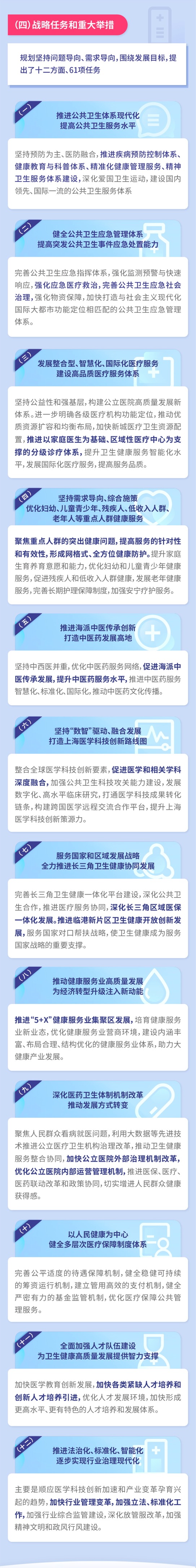 《规划》提出4个方面12项重点任务。突出5个“更加注重”:一是更加注重服务城市发展,二是更加注重公共卫生发展,三是更加注重优质医疗资源扩容和均衡布局,四是更加注重卫生健康数字化转型,五是更加注重体制机制创新。戳图了解↓(总台央视记者 王殿甲)