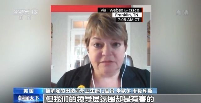 被解雇的田纳西州卫生部门官员 米歇尔·菲斯库斯:不幸的是,很多议员选择反对疫苗接种的言辞和阴谋论,而不是相信科学、听从疾控中心的建议。田纳西州的医疗卫生工作者非常好,他们不辞辛苦帮助人们,但我们的领导层氛围却是有害的,政府只关心政治。