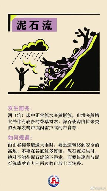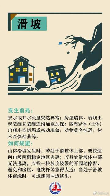 【@所有人!#这些地质灾害知识紧急时候能救命#】当前,全国多地进入汛期,山体滑坡、泥石流等地质灾害易发多发,给人民生命财产安全带来极大威胁。怎样防范地质灾害?地灾发生时如何避险自救?常见#地质灾害防范避险自救攻略#来了↓↓↓
