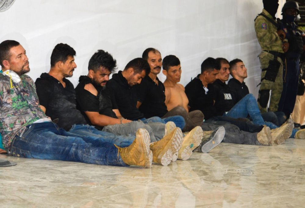 7月8日,在海地太子港,海地警方在新闻发布会上向媒体展示被逮捕的嫌疑人。(新华社发,库坦摄)