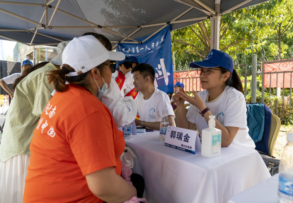 5月9日,“减重·云之南”系列活动上,民众在向医生咨询减重方法。新华社记者 陈欣波 摄