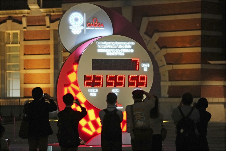 △东京奥运倒计时7天,东京街头电子钟引围观