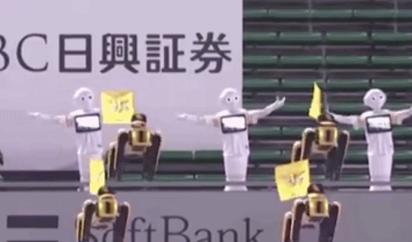 路透社7月9日报道,日方或将在看台放置机器人以代替观众,比如去年7月举办的日本职业棒球联盟的比赛中,主办方请来了一群跳舞机器人、机器狗加油助威。这些机器人机器狗戴着球队的帽子,挥舞着球队旗帜,随着球队战歌起舞。