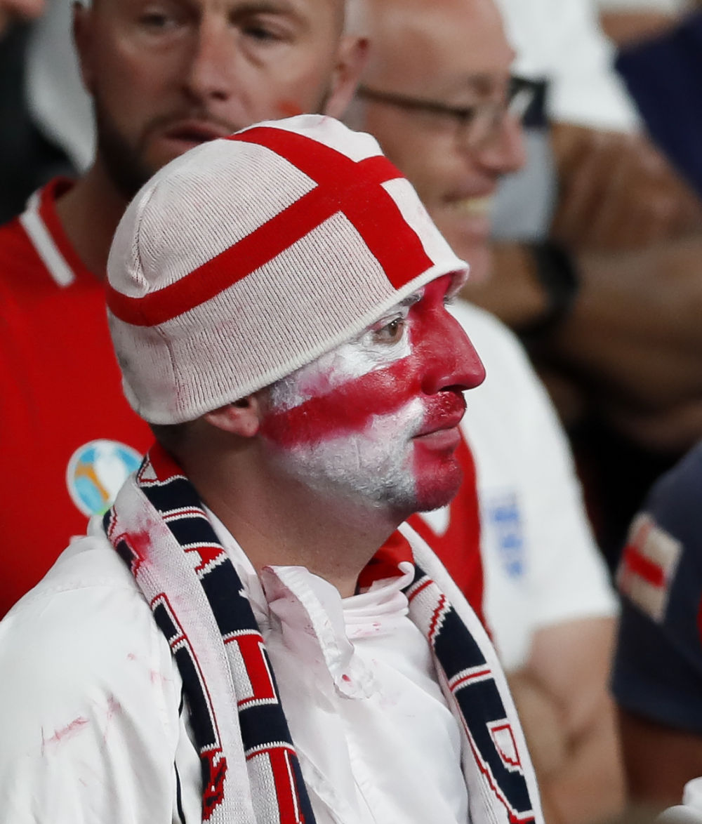 ↑7月11日,英格兰队球迷在球队失利后神情沮丧。