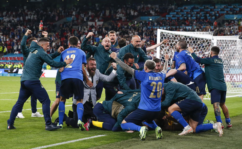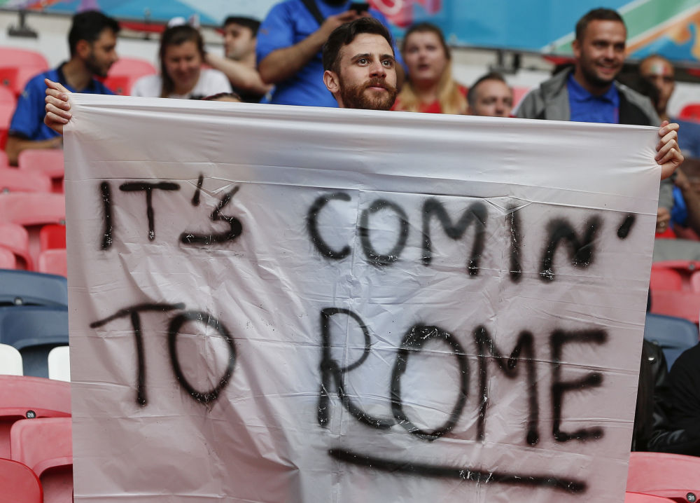 然而点球大战之后,英格兰夺冠梦碎,意大利球迷打出了“足球来罗马”(“It’s coming to Rome”)的标语。