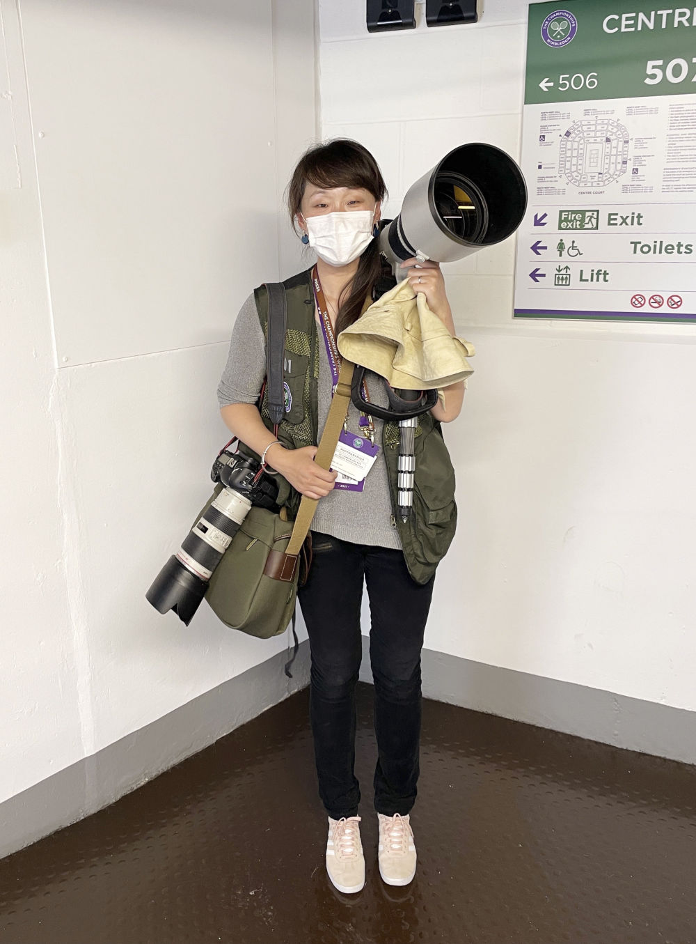 ↑新华社摄影记者韩岩2021年7月在英国伦敦采访体育比赛工作照。