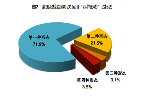 此外,第三、第四种形态分别占比3.1%、3.5%,和前几年同期数据相比基本持平。这表明,惩治腐败这一手始终没有松,为强化监督提供了强大后盾。