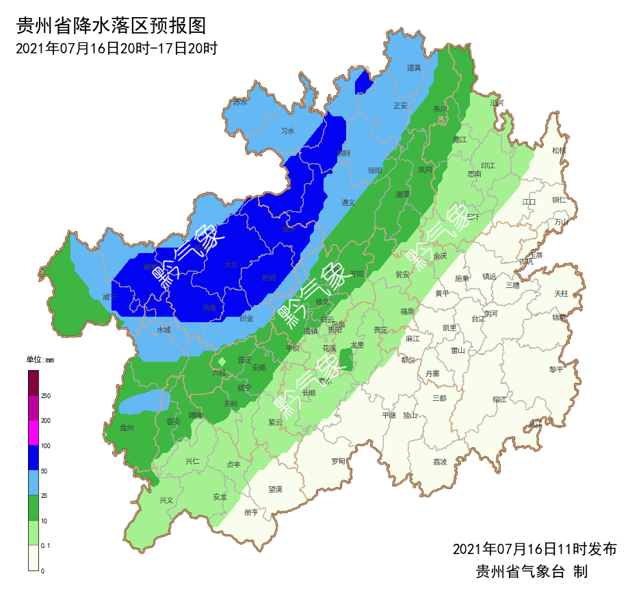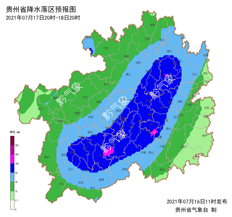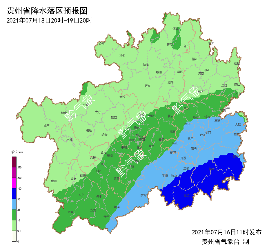 7月16日贵州省气象台发布暴雨预报,预计17至20日受低涡切变系统影响,贵州省将出现持续性强降水天气,建议做好蓄水保水准备工作。