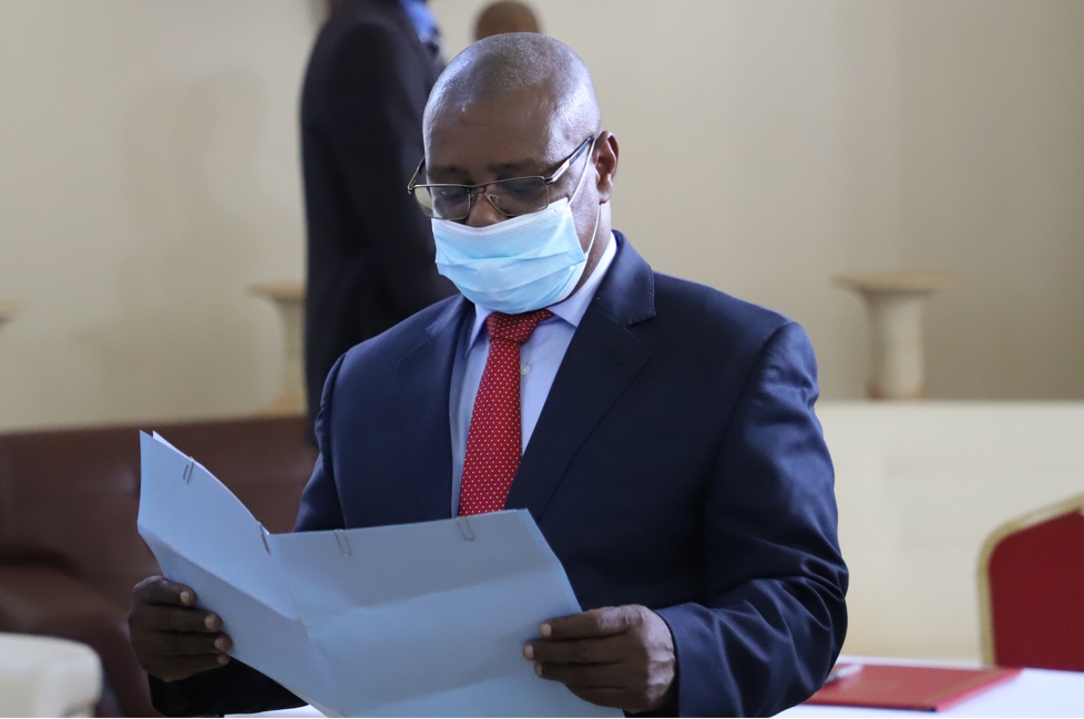 △中非共和国卫生部长索姆塞在疫苗交接仪式上发表讲话