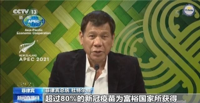 16日晚,菲律宾总统杜特尔特在以视频方式出席亚太经合组织领导人非正式会议时表示,新冠肺炎疫情持续已经一年多,但距离全面恢复仍然遥远。当前各国在疫苗获取方面仍然存在着巨大的差异,这种严重失衡现象必须得到纠正,疫苗民族主义必须予以终结。
