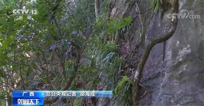 总台央视记者 邵海成:我们现在看到的长在悬崖峭壁上的就是带叶兜兰,2004年发现的时候大概只有600平方米,现在已经扩展到2000多平方米。
