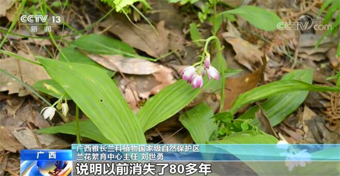 广西雅长兰科植物国家级自然保护区兰花繁育中心主任 刘世勇:贵州地宝兰是在1921年德国植物学家在贵州的罗甸县发现的新物种,就是以罗甸县地名命名的贵州地宝兰。从1921年到2006年,重新在雅长保护区发现了这个物种,说明以前消失了80多年,科学家才在自然界发现这个物种,这对我们有非常高的科研价值。