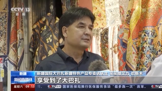 新疆国际大巴扎新疆特色产品专卖店店主 买买提艾力·哈斯木:疫情期间我们享受了减免4个月物业费的政策,4月1号以后我们的营业额上升到15万以(上)才交税,对商户省了一笔钱。
