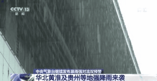 中央气象台上午10点继续发布暴雨黄色预警和强对流天气蓝色预警,预计今天,东北、华北、黄淮、江淮至贵州一带都会受到降雨影响。内蒙古、黑龙江、北京、河北、山西、河南、安徽、江苏、山东、湖北、湖南、贵州、重庆、云南等地的部分地区有大到暴雨。其中,河北西北部、安徽中北部、贵州西南部等地局部地区有大暴雨;并且还会出现短时强降水、局地有雷暴大风等强对流天气。