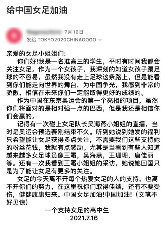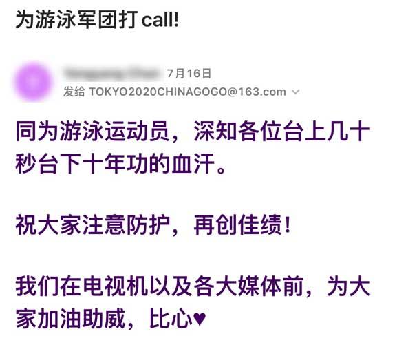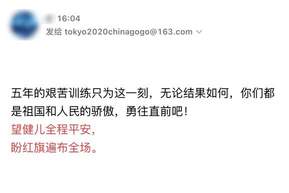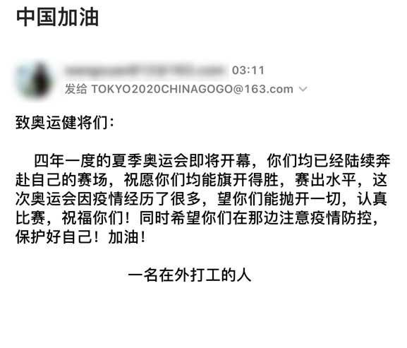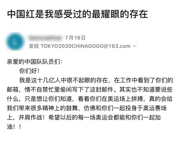 7月16日,“中国加油站”电子邮箱在开放首日,收到了来自祖国大江南北、日本乃至世界各地热爱体育的同胞们的超过200封邮件,纸短情长,为中国运动健儿应援助威。情真意切的字句需要分享,让激情加倍,让我们一起为中国奥运代表团加油!