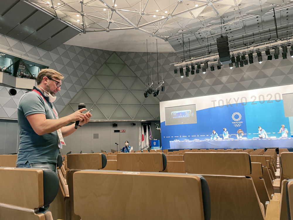 抵达东京第二天,我们就开始了东京奥运会的前期准备工作,并在MPC(主新闻中心)开始采访。昨天我的采访任务是拍摄两场新闻发布会,一场是由东京奥组委主席桥本圣子和首席执行官武藤敏郎出席的东京奥组委发布会,一场是国际奥委会主席巴赫出席的新闻发布会。