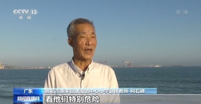 广东揭阳市惠来县靖海镇中心小学退休教师 柯石磷:看他们特别危险,第一反应就是想救人,就拿着两个救生圈冲下去了。