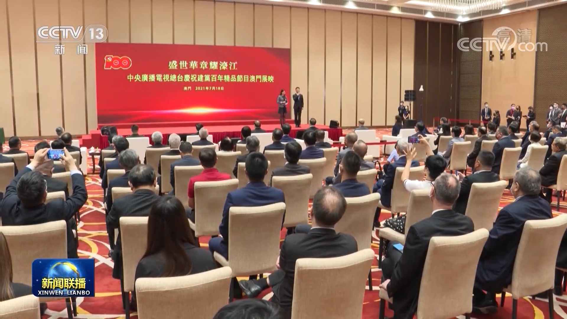 央视网消息(新闻联播):18日,在中央驻澳机构、澳门特区政府主要负责人,以及澳门社会各界代表的共同见证下,中央广播电视总台庆祝建党百年精品节目澳门展映活动正式启动。在庆祝中国共产党成立100周年之际,总台现场直播庆祝大会、“七一勋章”颁授仪式,创作及录制播出的文艺演出《伟大征程》,并推出《觉醒年代》《大决战》《跨过鸭绿江》等一批扛鼎之作,在海内外受到广泛赞誉。这些精品力作从18日起,将在澳广视多个电视频道以普通话和粤语集中播映,近期还将在香港及海外以44种语言上线播出。