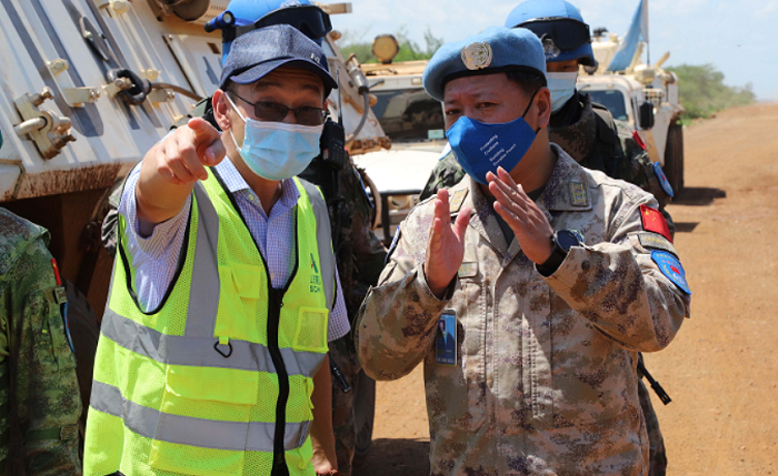 连日来,中国第七批赴南苏丹(朱巴)维和步兵营的维和官兵在中企项目施工现场执行了现地勘察和武装巡逻任务。维和官兵的武装巡逻,对周边不法武装分子形成了强有力震慑。(总台记者 马培敏)