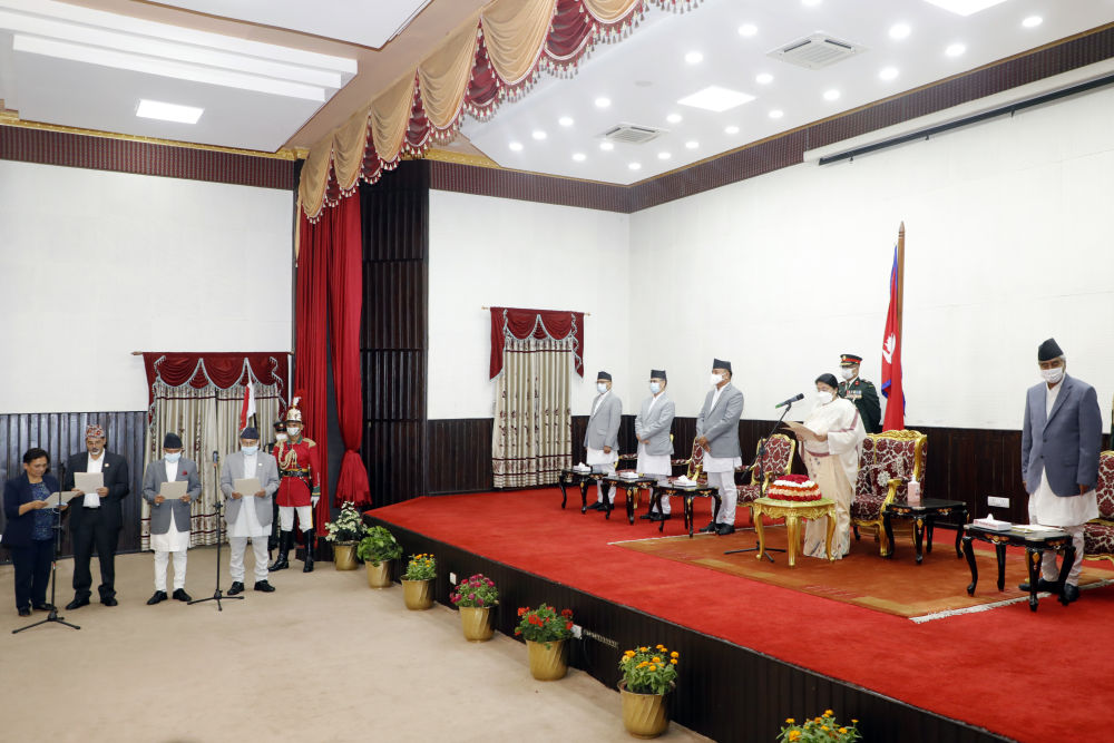 7月13日,德乌帕在尼泊尔总统班达里主持下宣誓就任尼总理。新华社发