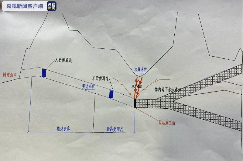 隧道内水源补给丰富,进一步加大了隧道内抽排水的难度,造成全区向前推进速度较慢。目前已通过透水区输液注浆和水库抽水等措施,基本切断和杜绝隧道内的水源补给。受困点处在隧道下坡段,隧道是有坡度的、坡度为3%,并不是一个平直的隧道,这也增大了救援的难度。