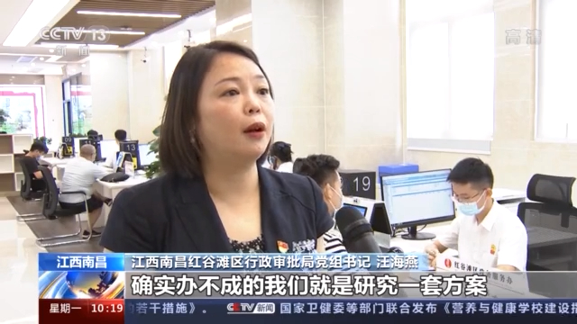 江西南昌红谷滩区行政审批局党组书记 汪海燕:企业群体到我们政府来办事,所有的事情,遇到了任何疑难杂症,到办不成事专窗来,我们会把所有的疑难杂症问题进行再研判,再研究,如果能够现场完善,我们现场让它办成,确实办不成的我们就研究一套方案,我们自己会去跟内部的这些部门来协商。