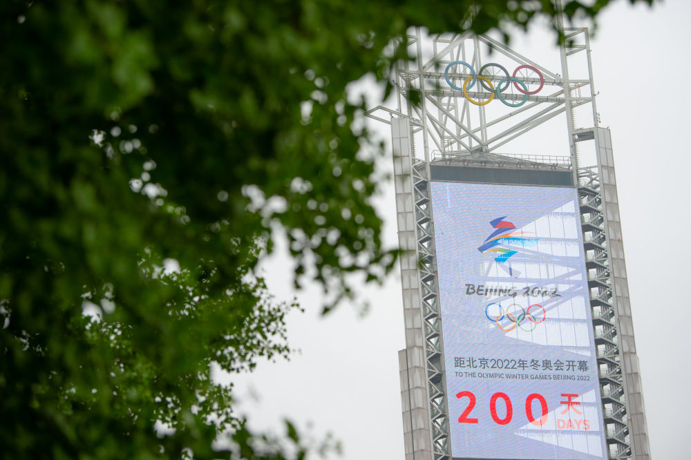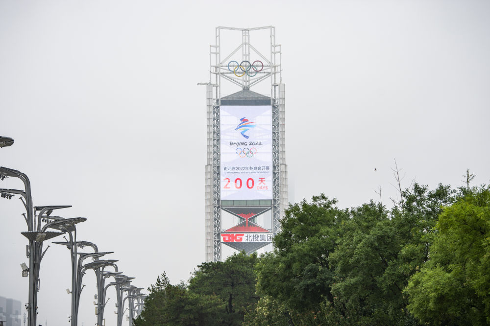7月19日,在北京奥林匹克公园,玲珑塔上的大屏幕显示距北京2022年冬奥会开幕还有200天。新华社记者 陈钟昊 摄