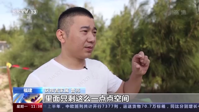 获救者家属 曹亮:我老婆告诉我,里面只剩这么一点点空间,鼻子和嘴巴,仰着头在那儿呼吸。(我妻子)说当时的话已经放弃,准备就是迎接死亡吧。