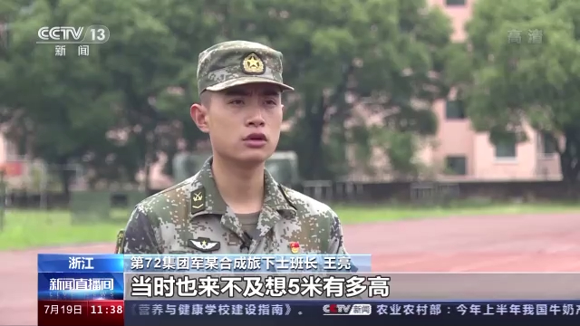 第72集团军某合成旅下士班长 王亮:根本来不及多想,也来不及想5米有多高,反正脑子里就一个念头,得赶紧救人,得快一点再快一点。