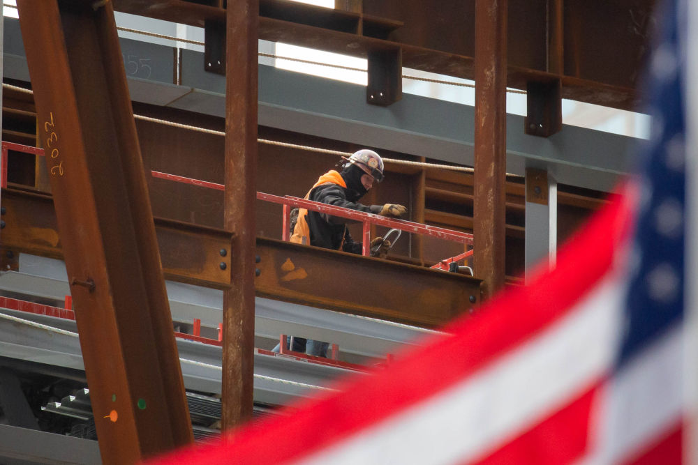 2021年1月8日,工人在美国纽约一处工地工作。(新华社发郭克摄)