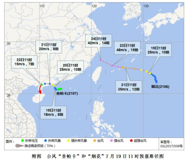 海南省气象部门提醒,受台风“烟花”的相互作用,台风“查帕卡”后期路径存在较大的不确定性。22日~24日,热带低压可能在南海东北部徘徊,对海南省的风雨影响仍将持续,请相关部门密切关注后续预报,做好防御工作。