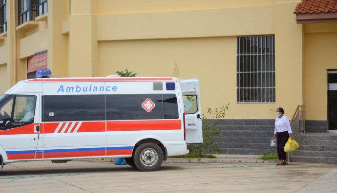 下午15时许,卖女士拿着出院证明走出瑞丽市中医傣医医院病区,医护人员为她送上祝福。