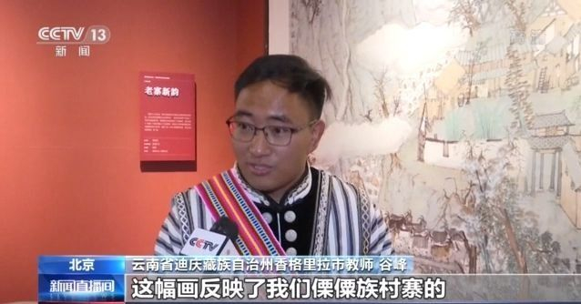 云南省迪庆藏族自治州香格里拉市教师 谷峰:这幅画反映了我们傈僳族村寨的一个巨大的变化,也让全国的观众朋友认识到我们家乡的美。