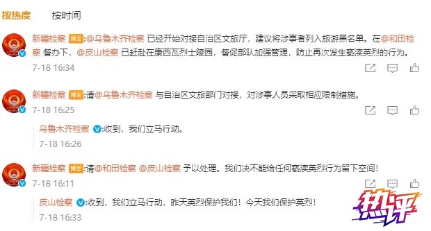 从司法机关的角度来看,各级司法、执法机关反应迅速,研判舆情、搜集线索、回应关切,并在条件允许时通过微博发指令。自治区检察院一句“收到!!无论初衷是什么,英烈不容亵渎!”,下属几级检察院的接力“收到”与后期反馈,都是高效的表现。