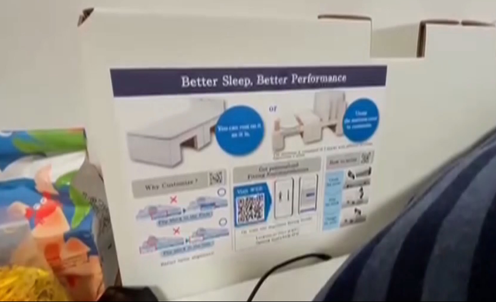 △前方直击:贾一凡带您走进国羽公寓 近距离观察纸质床铺