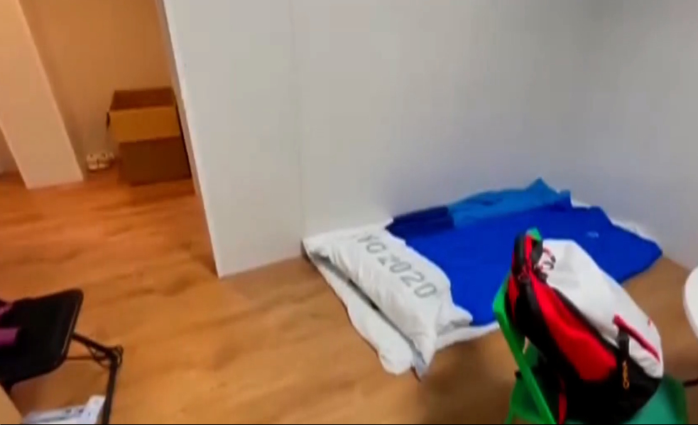 本届东京奥运会,中国羽毛球女队分到一套四室两厅两卫的公寓。在这套公寓里,将居住8名前来参赛的运动员和1名随队翻译人员。由于组委会提供的床铺不够充裕,翻译员只能选择打地铺而居,深度体验日本的榻榻米文化。