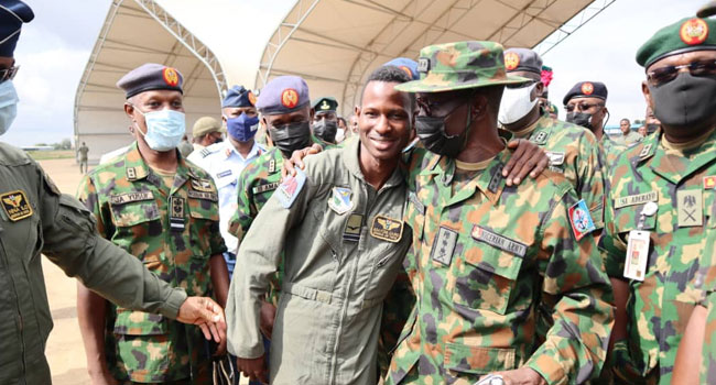 △安全逃生的飞行员戴罗中尉(前中)(图片来源:Channels TV)