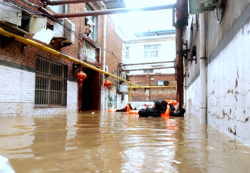 甘肃:暴雨致村民家中被淹 消防转移安置被困者