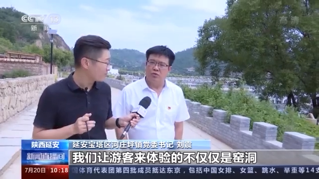 延安宝塔区河庄坪镇党委书记 刘震:绿水青山就是金山银山,生态给我们老百姓带来了生存环境的变化,也给我们老百姓带来了经济效益。我们让游客来体验的不仅仅是窑洞,也要体验采摘,体验耕读文化,而且是生态带来的延安纳暑避凉的生态体验。在享受我们生态带来的经济效益的同时,把我们农村的资源整体盘活起来,让老百姓从中受益。