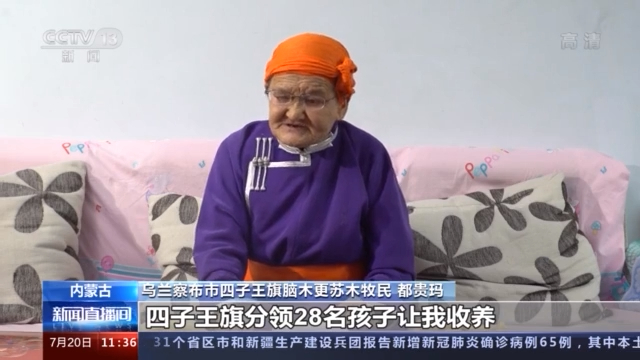 内蒙古自治区乌兰察布市四子王旗脑木更苏木牧民 都贵玛:分配给牧民收养,四子王旗分领28名孩子让我收养。