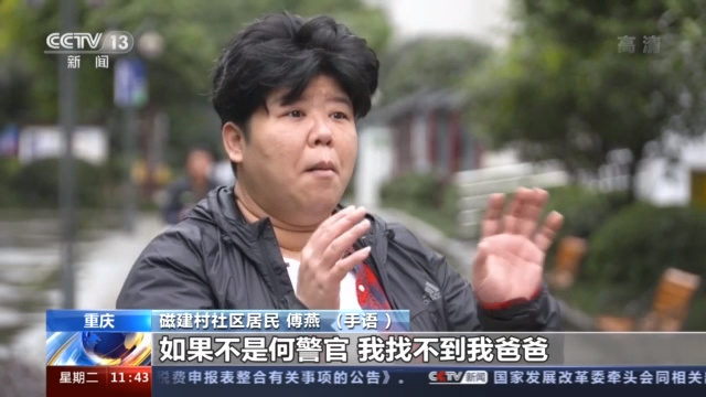 重庆市磁建村社区居民 傅燕:(手语)如果不是何警官,我找不到我爸爸。