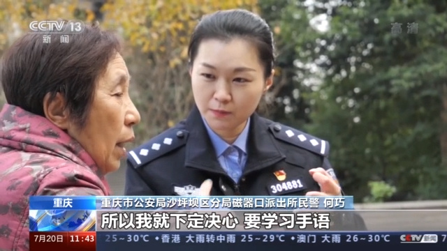 重庆市公安局沙坪坝区分局磁器口派出所民警 何巧:他们跟我用手语比划,我看不懂,我在纸上写字,因为他们很多的文化水平并不高,写字也写不清楚。所以我就下定决心,要学习手语。