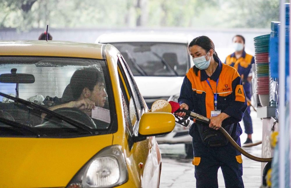 7月12日,河北省遵化市一家加油站的工作人员给车辆加油。(新华社发,刘满仓摄)