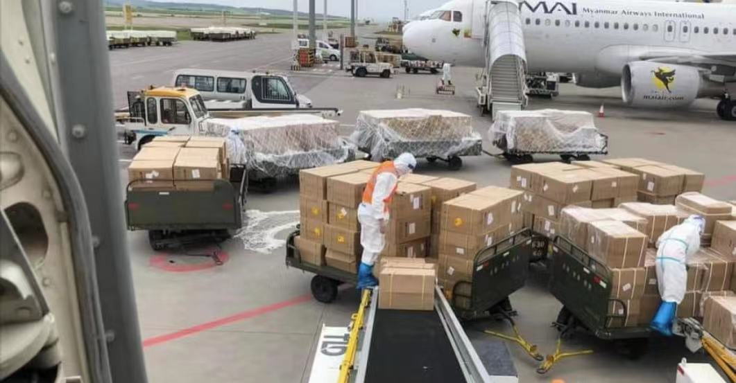 另外,据仰光机场方面消息,在过去一周多时间中,每天至少有六到七架货运包机从中国向缅甸运送制氧机、呼吸机、医疗器械等抗疫物资,平均每个货运包机运送的抗疫物资都在十吨以上。