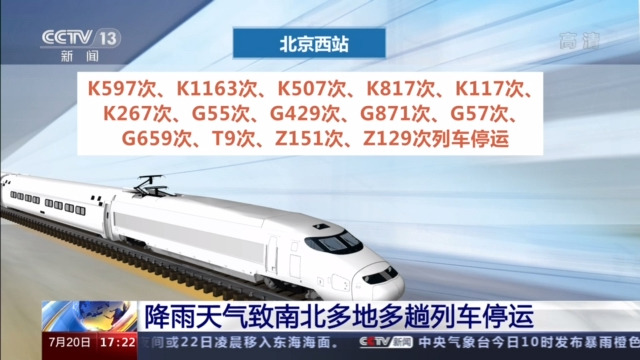 连日来的持续降雨导致郑州局管内普速陇海线、焦柳线、宁西线、京广线和郑西高铁、郑太高铁、郑徐高铁部分区段封锁或限速运行,15趟列车停运或折返。今天北京西站共有22趟列车停运,车站方面提醒,已购以上列车车票的旅客,可以在30天内办理全额退票手续。